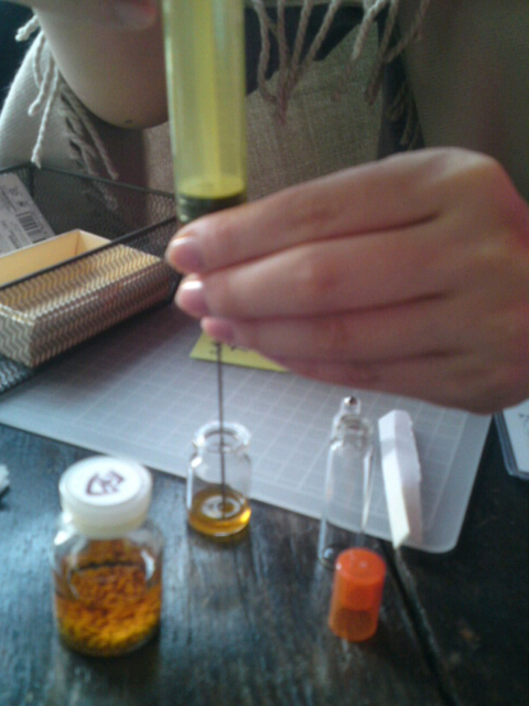 注射器を使ってml単位で足していきますが、0.5mlという微妙な単位もみなさん慎重に、しっかりと測ってくれました。