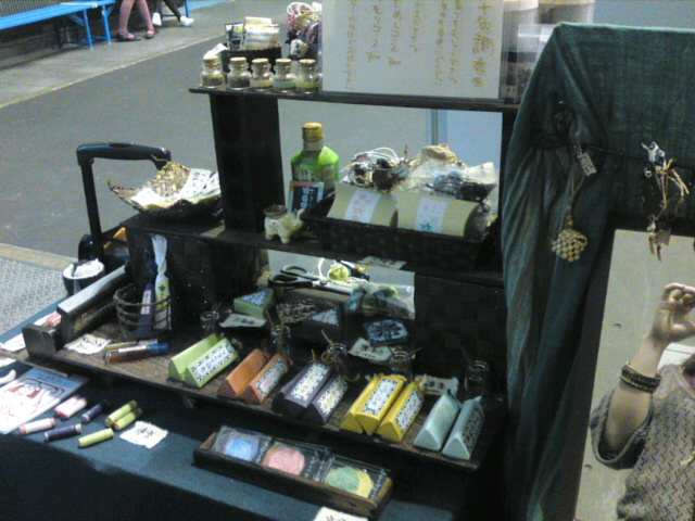 なんと場所は会場のかどっこだったので『やっと廻りきったー』と喜ぶ方や、土地柄なのか通り過ぎに『良い香り!』と言って下さる方が沢山いて、なんだかほっこりした気分にしてもらいました。そして、愛知にお住まいの先輩香司さんが遊びに来てくださって沢山いろんなお話をしました