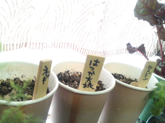 あとはキッチン菜園。ルッコラやチャービルの世話は一段とやいて、そんなに沢山は取れないけど20日で収穫出来る『はつか大根』を育てはじめました。