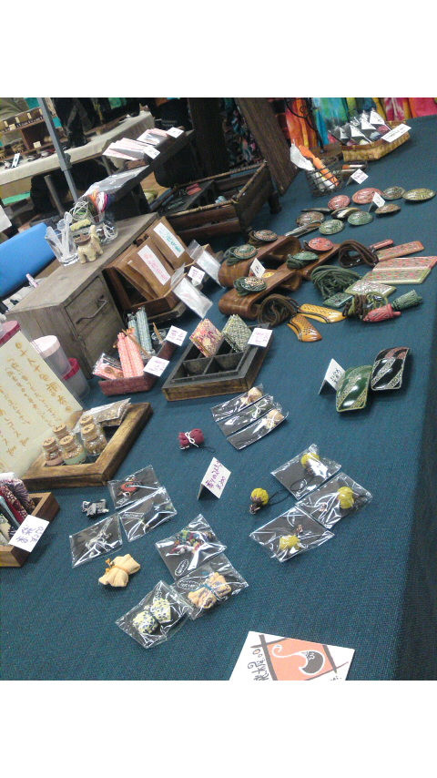 今ではお香を売るときに一緒に出品をさせて頂く仲となり今回の出品数は過去最多!沢山立ち止まる方の中にはあのアイヌの刺繍を身にまとった踊り子さん達がいらっしゃいました、が。。