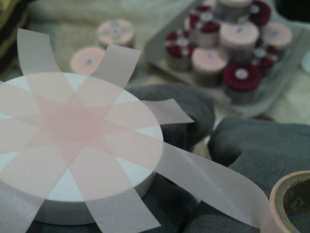 円形にマスキングテープを貼るときは平行よりも交差させてはってったほうがキレイに見える気がするのでひたすら貼りまくりました
