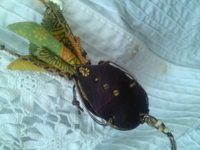 まずは革や紐、布、ビーズを好きな色合いで組み合わせます。