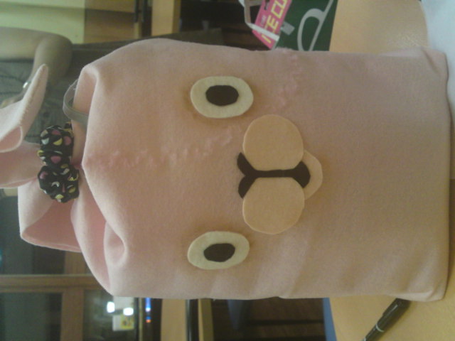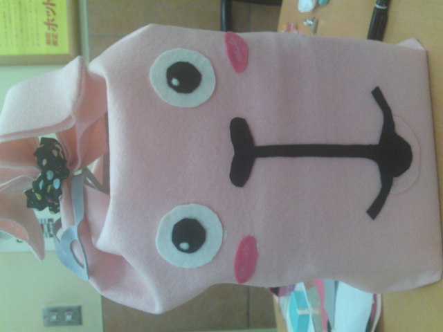 針と糸で袋上にした以外はフェルトとボンドでぺたぺた。あ、あとリアルアイシャドウでキモサをかもし出してみました~