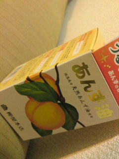 合成のものは体によくないとのことで、やっぱり自然のがいいかしら…と手にとったのは『あんず油』。このご時世完全に自然物というのは保存する以上あり得ませんが、とりあえず『あんず油』。