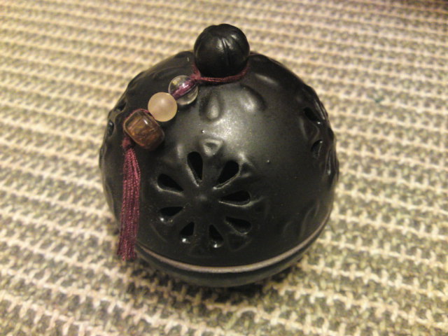 (あれ、日本語へん?)『中央に穴』があるのは、スティック状のお香(ドゥープ香・竹芯香など)をたてるため。穴が大きめなのでチベット香ほど太くなければほぼさせます